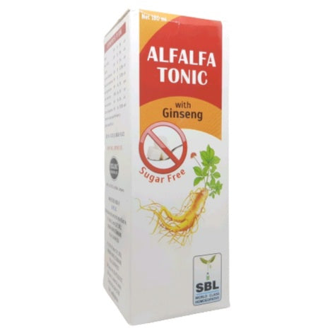 Alfalfa Tonic with Ginseng Sugar Free SBL is available in 180 ml glass bottle