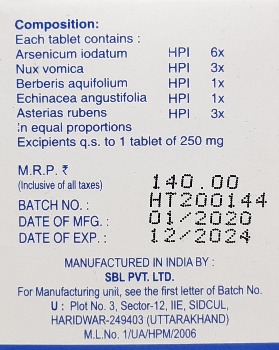 Pimplex Tablets SBL is available in 25 grams pack