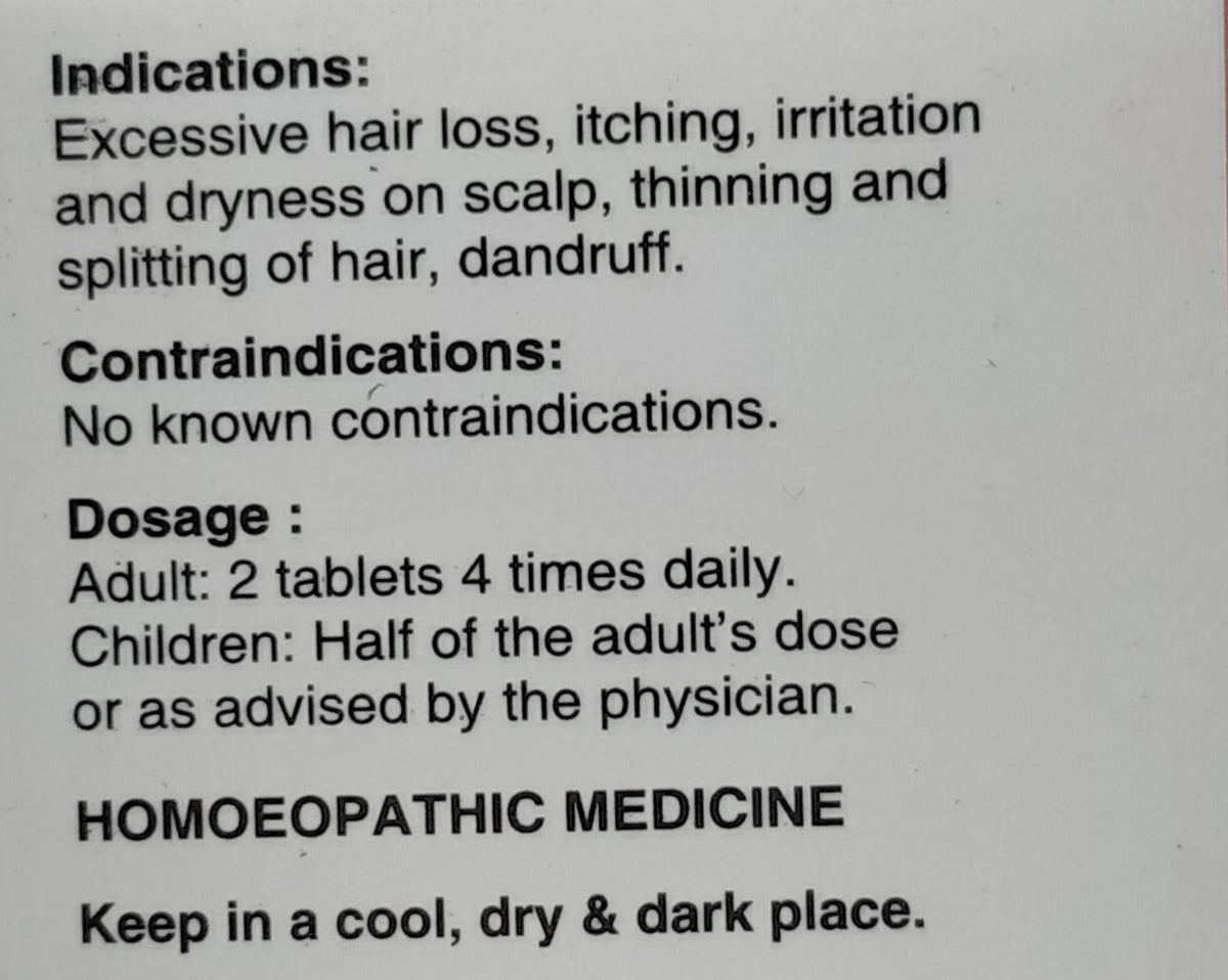 Calcarea phosphoricum 3x:Â Important tissue remedies, helps in nourishment of the required nutrients and improves the quality of hair.